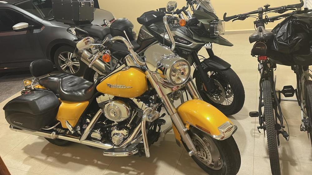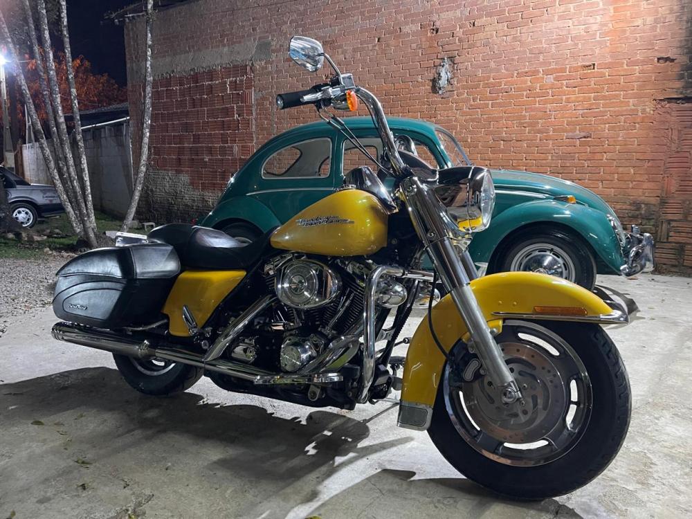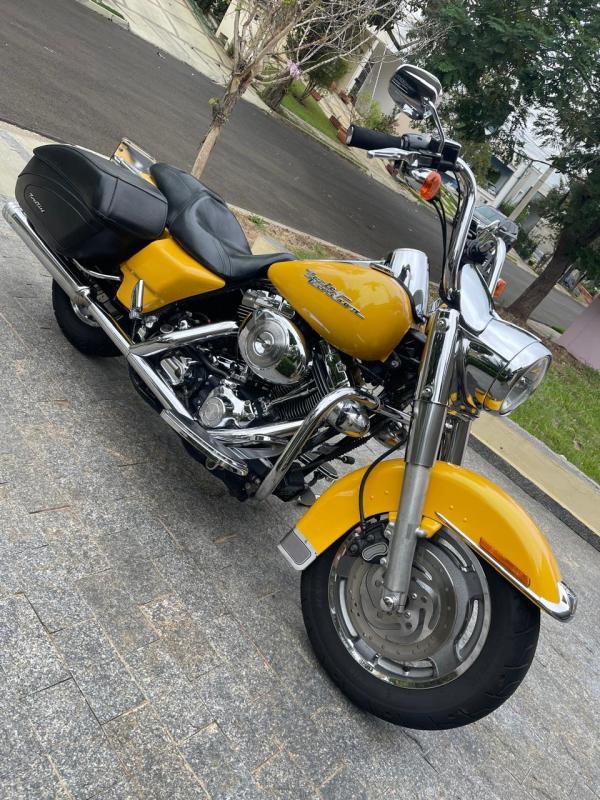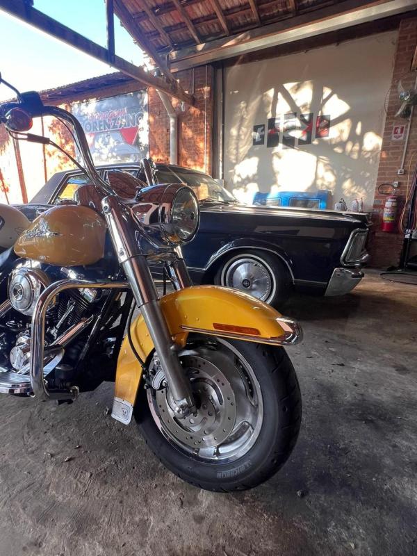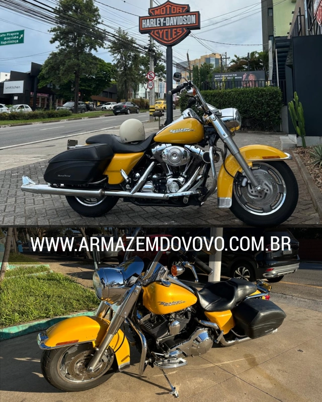 Falando da Road King, foi introduzida em 94, possuía malas rígidas e ecrã dianteiro, porém sem carenagem, sendo que o farol retro foi sempre uma das maiores “imagens de marca”. Ela ganhou evoluções de motorização e outras versões, como a Road King Custom, em 2004, e a Road King Classic, como celebração do aniversário em 2008.