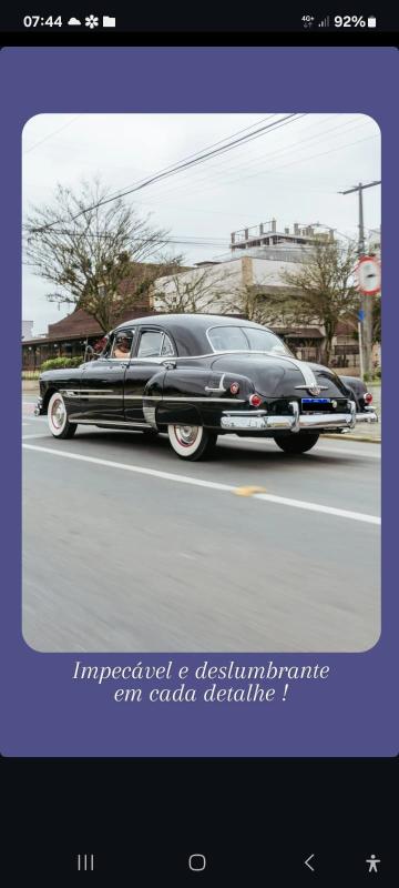 Transmissão: Câmbio automático Hydramatic original, revisado e em perfeito funcionamento Processo de restauração completa, de carroceria, motor, chassi, suspensão, detalhes ornamentação frisos , grades, parachoque cromagem especial, pneus originais americano Firestone, interior restauração padrão com tecido importado, grande comprovação de documentação.