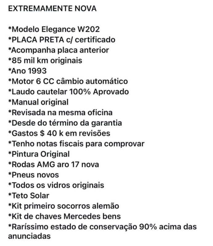 1993/1994 KM: 85.500 Gasolina Uma clássica ´Baby Benz´ de respeito, muito respeito! Invocada. A história das série C da Mercedes Benz não vem de hoje.